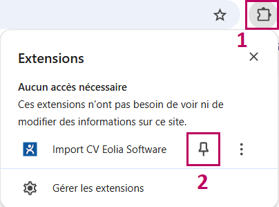 Une fois l’extension épinglée, le plugin est prêt à l’utilisation.