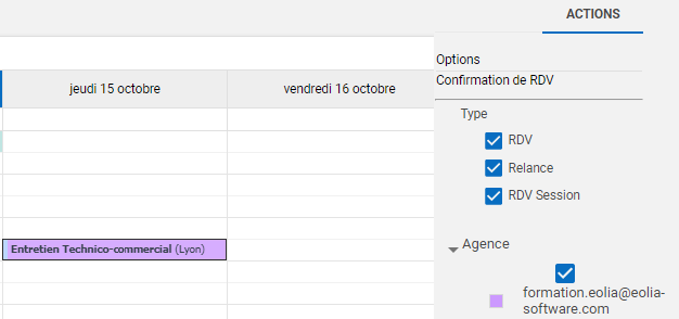 Le rendez-vous reprend la couleur du responsable et celle de la session.