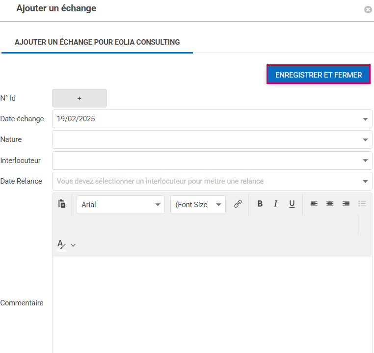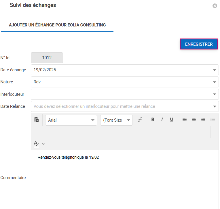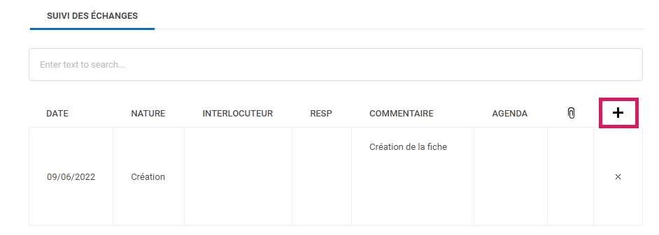 La partie Suivi des échanges vous permet de gérer les échanges Client/Contact afin de garder une traçabilité.