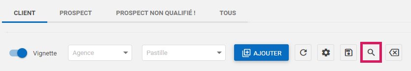 Pour rechercher un client ou un contact en fonction de différents critères :