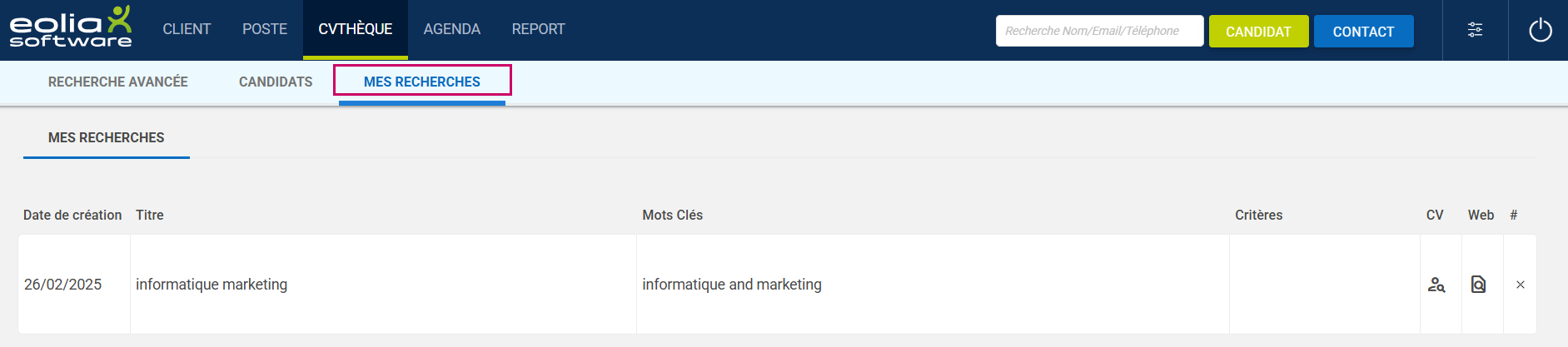- Cliquer sur le bouton Rechercher sur la CVthèque