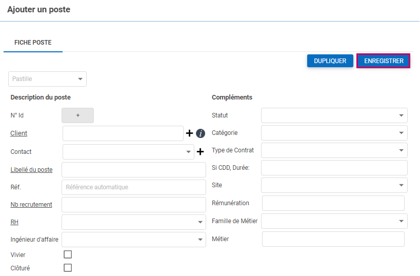 - Le champ référence vous permet de créer un unique identifiant pour votre poste.