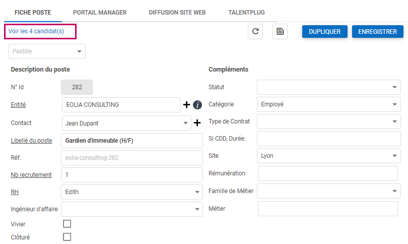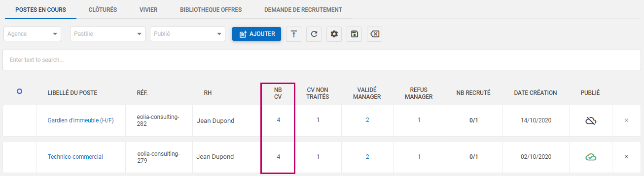 Pour consulter les candidatures qui ont postulé pour une offre :