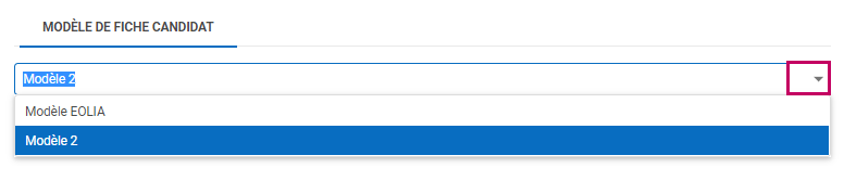 • Par la suite, cliquer sur la flèche affiché au niveau de la partie « Modèle de fiche candidat ».