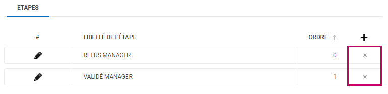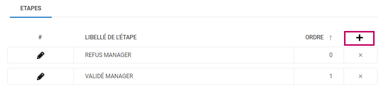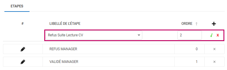 • Ensuite, choisir le Libellé de l’étape et l’ordre.