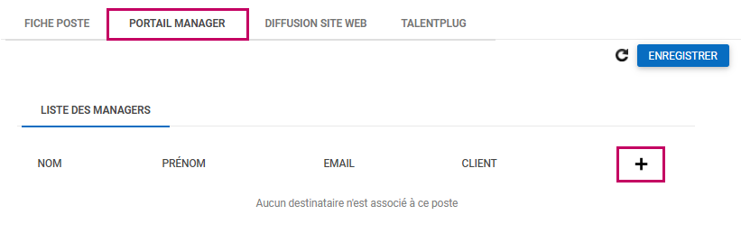 - Ouvrir une fiche de poste, puis sur l’onglet Portail Manager.