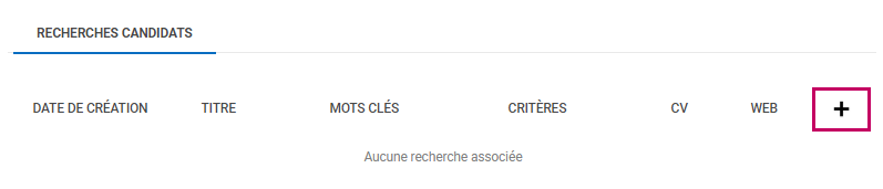 - Cliquer sur le bouton + affiché sur la partie Recherches candidats.